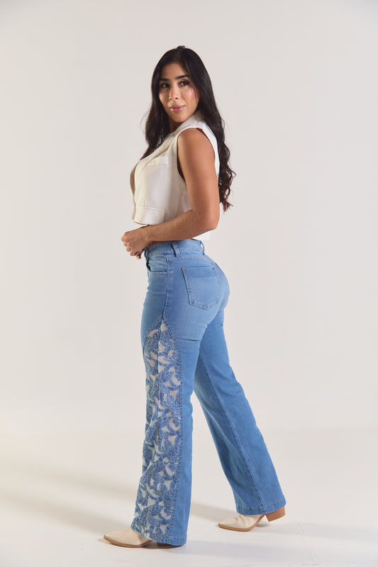 Jean con flores bordadas - REF: 10328