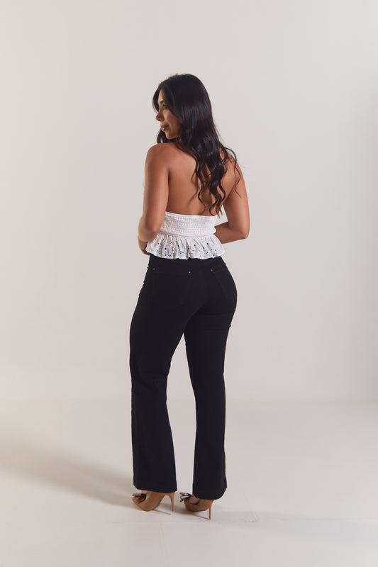 Jean bota recta con bordados laterales - REF: 10326