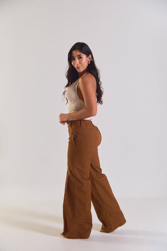 Pantalón wide leg con costuras en contraste - REF: 10232