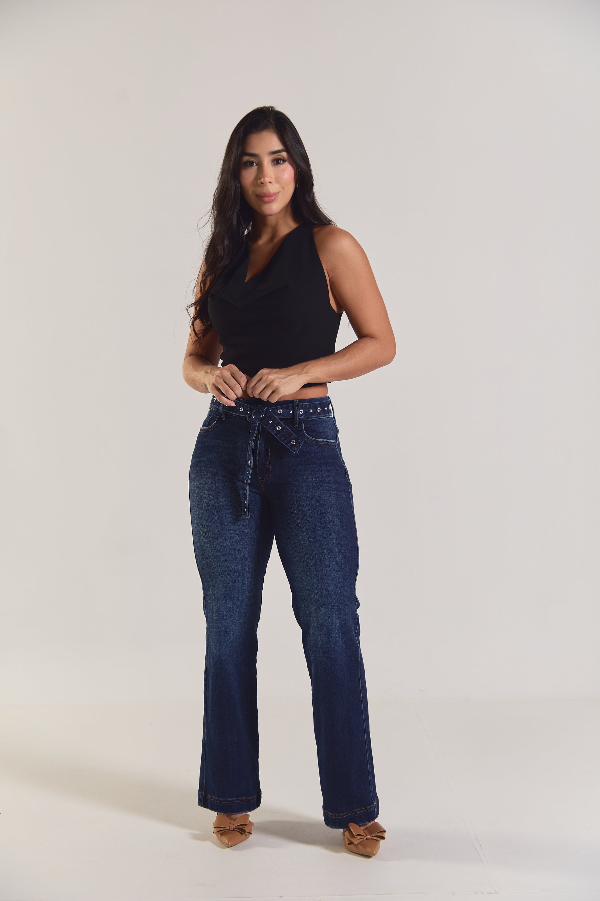 El jean perfecto para elevar tu estilo con un toque moderno. Su diseño de tiro alto y corte recto con cinturón en taches crea una silueta más alargada, realzando la figura sin perder comodidad. El cinturón lo puedes remover o dejar para tener diferentes formas de usar. Se convertirá en tu jean favorito. Confeccionado en tela con stretch que se adapta a tu cuerpo. Ideal para looks casuales o de oficina, combinando con blusas, tops o camisas según la ocasión.