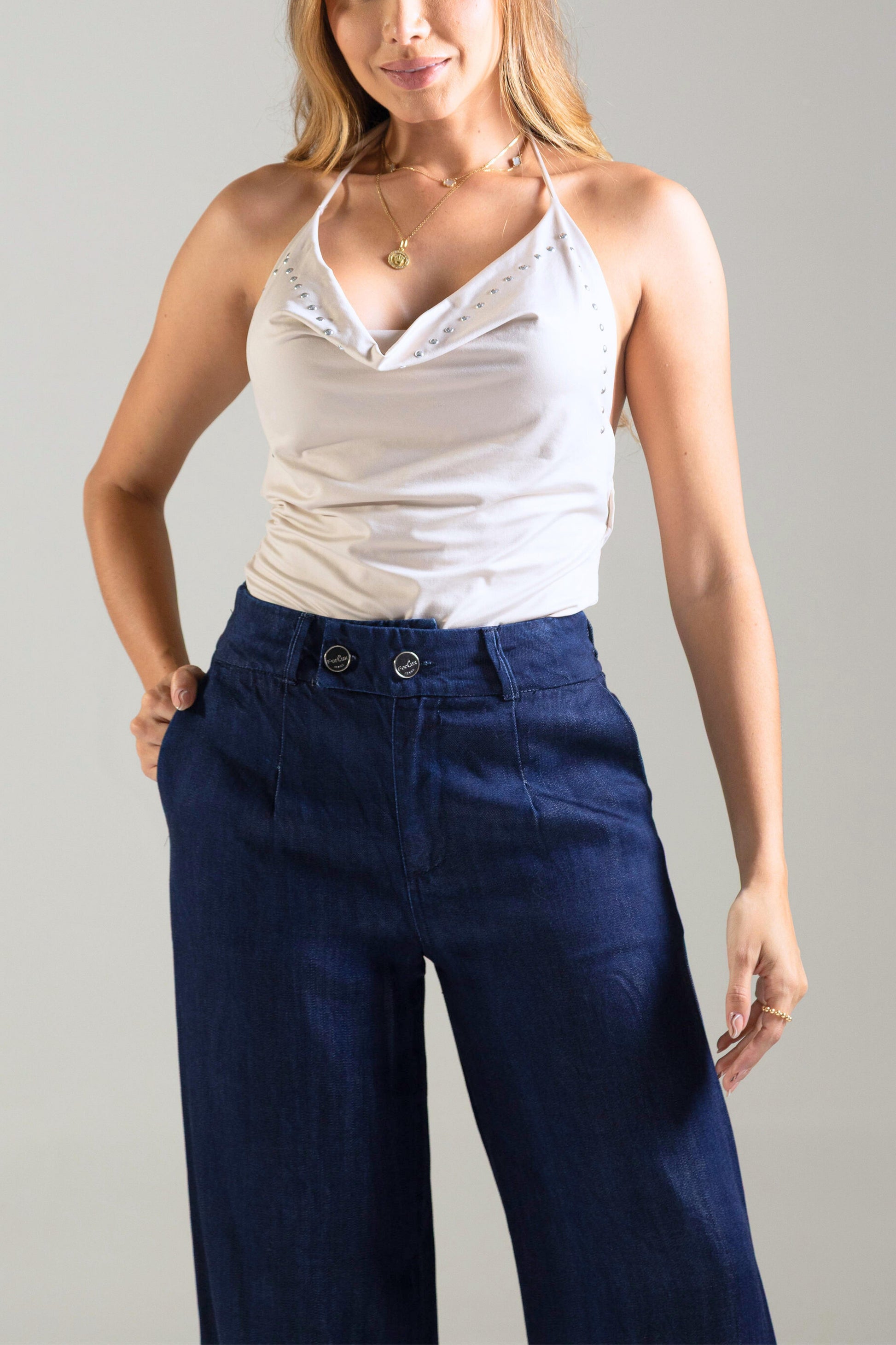 Jean palazzo con detalle en pretina - REF: 10234